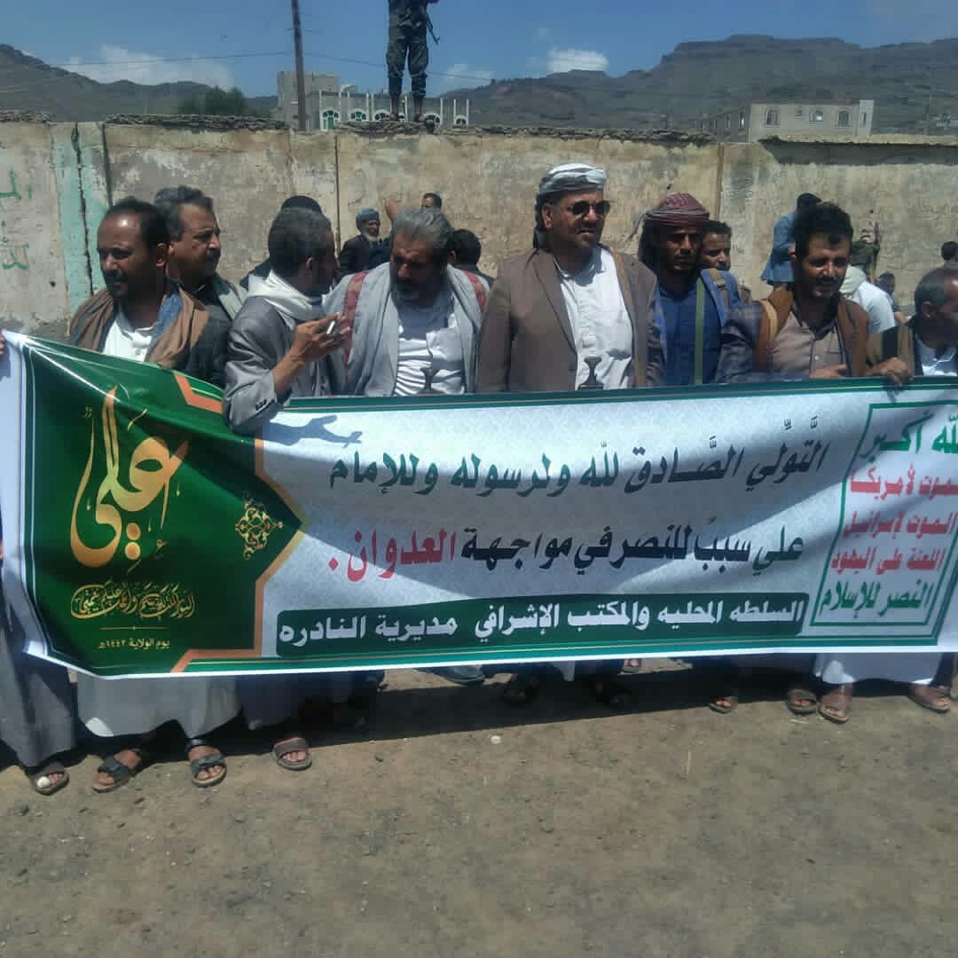 أبناء مديرية النادره يشاركون في الفعالية المركزيه الحاشدة التي أقيمت في مديرية يريم والتي ظمت مديريات المربع الشمالي على ملعب يحصب بمناسبة الإحتفاء بيوم الولاية للإمام علي كرم الله وجهه وقد كان النصيب الأكبر لأبناء المديريه في الحضور والمشاركه