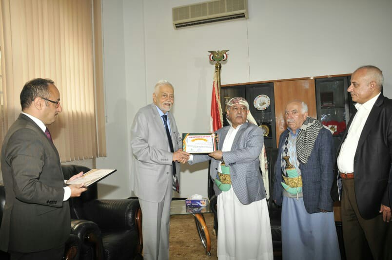 البرفسور عبد العزيز الترب مستشار رئاسة الجمهورية والمجلس السياسي الاعلى يزور رئيس البرلمان اللواء يحيي الراعي ويكرمه بشهاده الاتحاد العربي للاعلام الالكتروني العالمي من الدكتور صالح المياح رئيس الاتحاد العربي للاعلام الالكتروني كذلك يكرمة بشهاده من مركز ابو الشهيد ابو مهدي المهندس الممنوحه له من الشيخ ابو جعفر الدراجي رئيس المركز وبدوه اشادر رئيس البرلمان بدول محور المقاومة وشكر رئيس الاتحاد العربي للاعلام الالكتروني وكذلك شكر مدير المركز لابو الشهيد ابو مهدي المهندس ولكل طاقمه وفي المقدمة الشيخ ابو جعفر الدراجي مدير المركز والدكتوره سوزان زين المعاون التنفيذي والاخ طارق المساعد للمعاون التنفيذي كما اشادر بالدور الرئيسي للمناضل البرفسور عبد العزيز الترب على جهوده في خدمة القضية اليمنية كما شكر رئيس البرلمان جهود العميد /حميد عبد القادر عنتر مستشار رئاسة مجلس الوزراء بنقلة مظلومية اليمن للعالم
