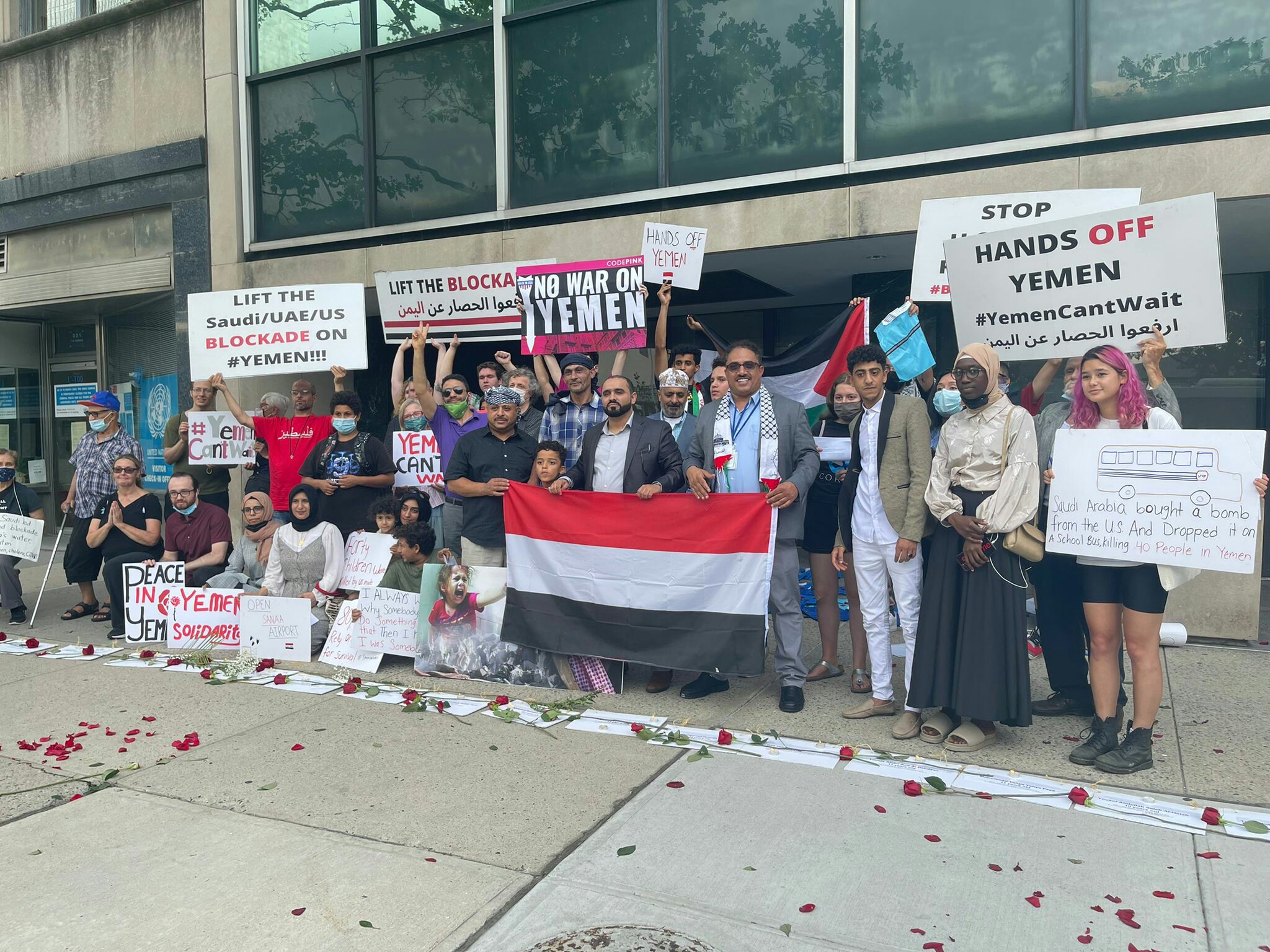 بإسم الشعب اليمني البطل المحاصر الذي أذهل العالم بصموده الأسطوري أرفع برقيات التهاني والتبريكات والشكر والتقدير والإحترام لكل أبناء الجالية اليمنية في الولايات المتحدة الأمريكية وإلىٰ فريق الحملة الدولية لفك الحصار عن مطار صنعاء الدولي وإلىٰ الجالية العربية والإسلامية وإلىٰ كافة شعوب وأحرار العالم وأخص بالذكر الذين نظموا وقفة إحتجاجية في نيويورك وفي سان فرنسسكو من أجل إبراز مظلومية اليمن للعالم الخارجي وكشف وقبح العدوان السعودي الأمريكي الذي إستهدف كل مقومات ومؤسسات الدولة واستهدف الشجر والحجر واستهدف اليمن من المهره إلىٰ صعدة .. العدوان البربري الغاشم الصلف والذي لم يشهد له التاريخ مثيل عدوان همجي مخالف للأعراف والمواثيق الدولية ولايعرف من الإنسانية إلا إسمها .. لذا نشد علىٰ أيدي أبناء الجاليات العربية والإسلامية وشعوب وأحرار العالم ونطلب مزيداً من الإنتفاضات والخروج في كاقة عواصم دول العالم للمطالبة بوقف العدوان وفك الحصار عن اليمن براً وبحراً وجواً .. وترك اليمنيين يقررون مستقبلهم السياسي هذا والعاقبة للمتقين .