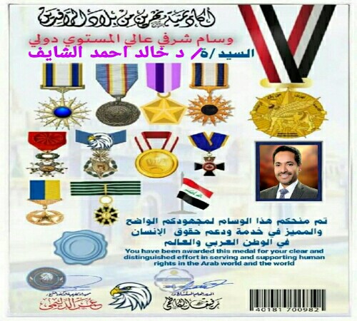 وذلك لمنحنا شهادة شرفية عليا من منظمة حركة السلام في القارة الافريقية ووسام دولي عالمي صادرمن اكاديمية نهرين بلاد الرافدين .