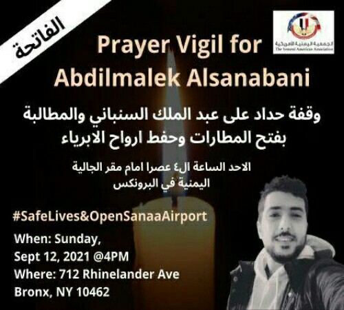 ندعوا كل قنوات تلفزة العالم وخصوصاً قنوات وإعلام دول محور المقاومة إلى تسليط الضؤ علىٰ الوقفة الإحتجاجية التي ستنظمها الجالية اليمنية في نيويورك مع نشطاء سياسيين وأعضاء مجلس الكونجرس وفريق الحملة الدولية لفك الحصار عن مطار صنعاء الدولي وممثلي منظمات المجتمع المدني ونشطاء سياسيين وحقوقيين دوليين وستتم مشاركة الوقفة مختلف الجاليات العربية والإسلامية وللوقوف أمام التطورات الأخيرة التي أقدم عليها مرتزقة العدوان من تصفية المواطن اليمني عبد الملك السنباني الذي يحمل الجنسية الامريكية وأيضاً سوف يطالب المحتجين وقف العدوان وفك الحصار عن مطار صنعاء الدولي الذي سبب معاناه للمغتربين اليمنيين والطلاب كون مطار عدن أصبح مرتعاً لعصابة العدوان الذي تجردوا من القيم الإنسانية وتسببوا في زيادة معاناة المغترب اليمني