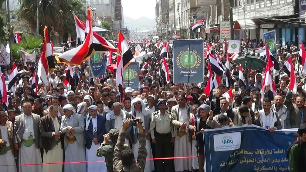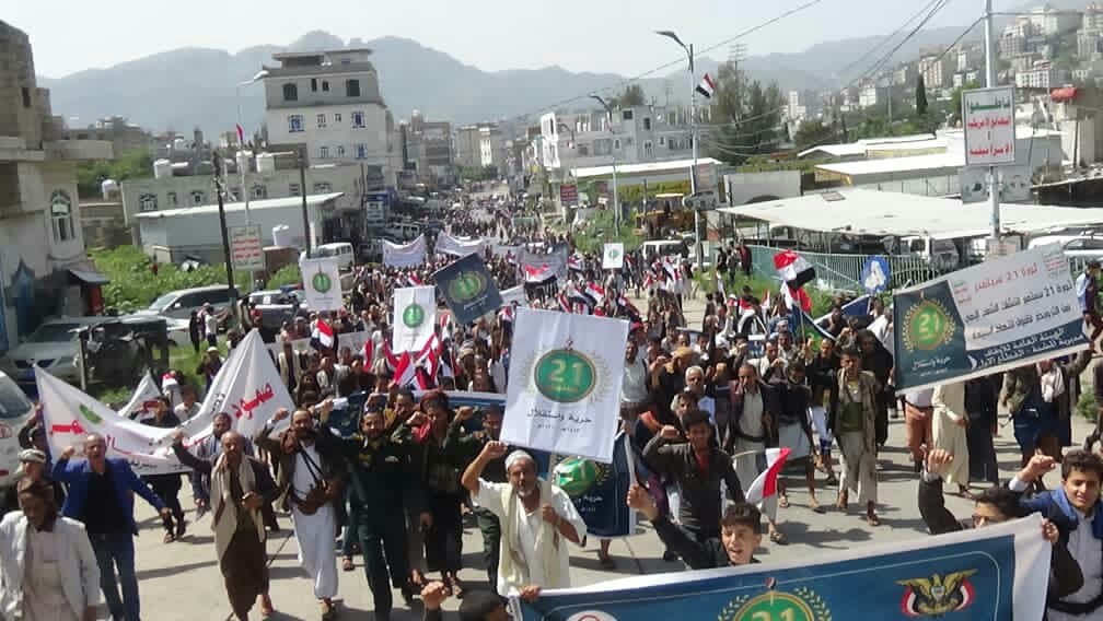 إحتفل اليوم أبناء اللواء الأخضر بالعيد السابع لثورة الـ٢١سبتمبر التي أسقطت منظومة الفساد ومراكز القوىٰ التقليدية المتنفذة الفاسدة أدوات النظام السعودي ، خرج الآلآف في مسيرة جماهيرية إنطلقت من أستاد إب الرياضي إلىٰ ساحة المحافظة يتقدم المسيرة الأخ اللواء عبد الواحد صلاح محافظ المحافظة والمشرف العام يحيىٰ اليوسفي