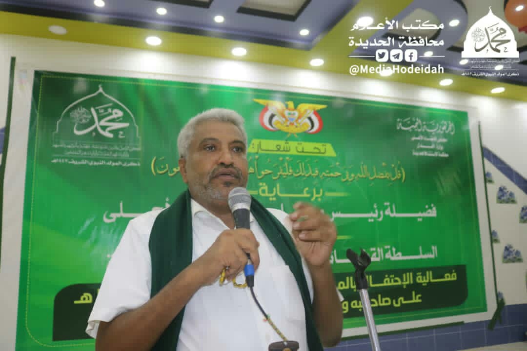 فيما استعرض محافظ الحديدة محمد عياش قحيم ووكيل أول المحافظة أحمد البشري، دلالات الاحتفال بالمولد النبوي، ومعاني ارتباط أبناء المحافظة برسول الإنسانية.
