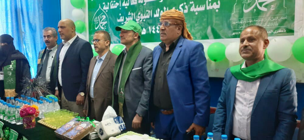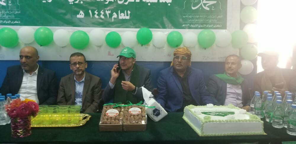 تلاها كلمة الاخ الشيخ عبد الله صلاح نائب مدير عام مكتب الامومة والطفوله في بداية كلمته رحب بالاخوه الضيوف جميعا واشار في كلمتة الى عظمة هذه المناسبة الدينية العظيمة وقال نحن اليوم نعيش الاجواء المحمدية برائحة الانتصارات في مختلف الجبهات وفي العمق السعودي وهناك تاييد الالهي لهذه الانتصارات كون اليمن يحمل قضيه هو الدفاع عن الوطن المقدس والصراع بين معسكرين معسكر الحق ومعسكر الباطل واشار صلاح نستلهم من هذه المناسبة الدينية الشريفة مبادئ القيم الايمانية والاخلاق والاسلام المحمدي الاصيل والوهابيه التكفيرية غيبت الاحتفال بمولد الرسول الاعظم بحجة انه بدعه وهم بعيدين كل البعد عن الاسلام المحمدي الاصيل والدليل هرولة الانظمة الخليجية المطبعة مع الكيان الصهيوني للارتماء باحضان الكيان الصهيوني وفرطو بالقضيه المركزية فلسطين وفرطو بالمقدسات من اجل السلطة والتاريخ سجلهم في اسؤا صفحاته ودعاء في نهاية كلمة الشيخ عبد الله صلاح الى الخروج المشرف الى الفعالية المركزية في ساحات جامعة اب لايصال رسالة للعالم بصمود الشعب اليمني الاسطوري