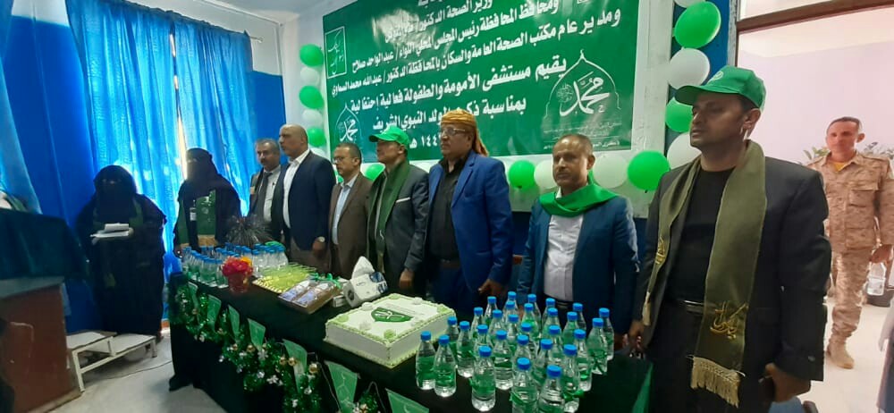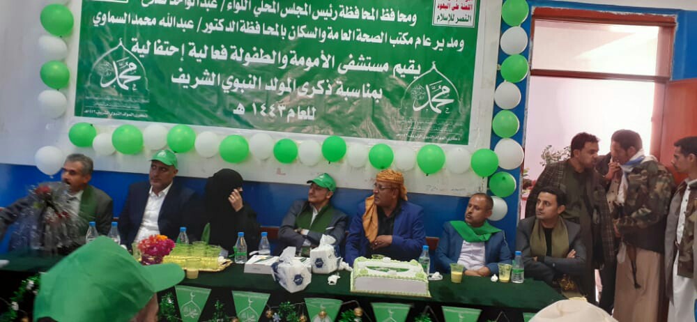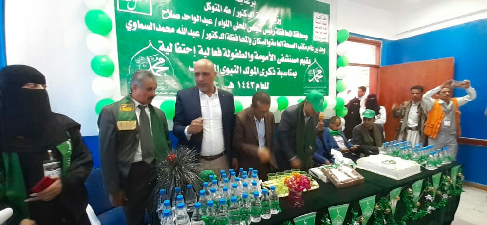 اقام مشفى الامومة والطفولة اليوم هذا الاحد فعالية بمناسبة ميلاد الرسول الاعظم صلوات الله وسلامه عليه بحظور الدكتور اشرف المتوكل وكيل محافظة اب والعميد حميد عبد القادر عنتر مستشار رئاسة مجلس الوزراء والدكتور عبد الله السماوي مدير مكتب الصحه والعميد علي البعداني مدير عام مديرية المشنة والدكتور عبد الغني غابشة رئيس الهيئة العامة لمشفى الثورة والاخ عبد الله الهبوب مدير عام الشؤن المالية بالهيئة العامة لمشفى الثورة والدكتوره فايزه مدير عام الامومه والطفوله والاخ عبد الله صلاح نائب مدير عام مشفى الامومة والطفولة لشؤن الماليه والاخ محمد المتوكل والاخ ابو الطيب المتوكل المدير التنفيذي للصليب الاحمر م/اب