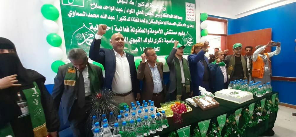تلاها كلمة ترحيبه من مدير عام مشفى الامومه والطفوله الدكتوره فايزه رحبت بكل الحاضرين في بداية كلمته واشارات الى عظمة هذه المناسبة الدينية العظيمة احتفال الشعب اليمني بهده المناسبه والذي يجسد عظمة الاسلام المحمدي الاصيل وقالت نحن امه واحده قبل ان ننتمي الى اي انتماء والى الى اي شخص او طائفة نحن امة متمسكون بمحمد ورب محمد وقران محمد ورسالة محمد عليه وعلى اله الاطهار فهنا لايمكن للامة ان تجمع بين ولائها لرسول الله وولائها لاعداء الله