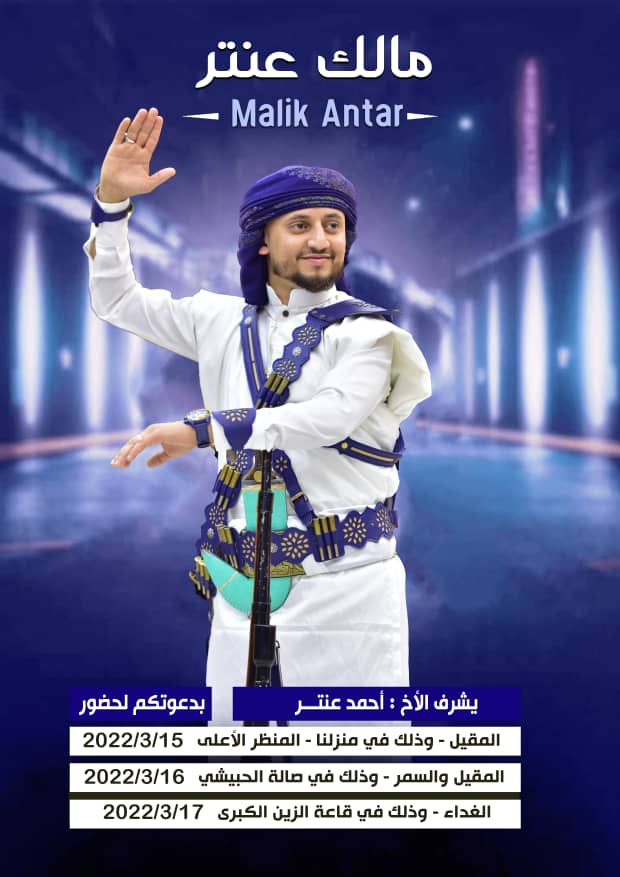 يحتفل الاخ احمد عبد الرحمن عنتر. في اللواء الاخضر العاصمة السياحية لليمن بزفاف نجلة مالك وسط لفيف من الاهل والاصدقاء الف الف مبروك للعريس مالك وادام الله افراحكم. ونتمنى للعريس حياة زوجيه سعيدة